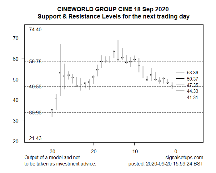CINEWORLD GROUP CINE Resistance is seen around 50.37-53.39.Support around 44.33-41.31.Outlook: Bearish