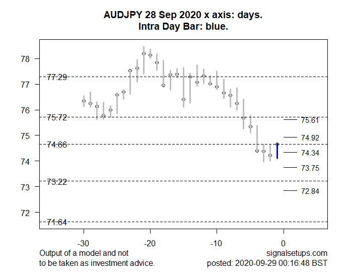 AUDJPY Support is seen around 73.75Resistance around 74.92-75.61Outlook: Retracement to Resistance Expected