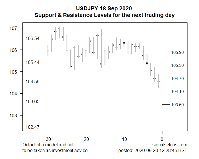 Resistance is seen around 105.30. Support around 104.10-103.50