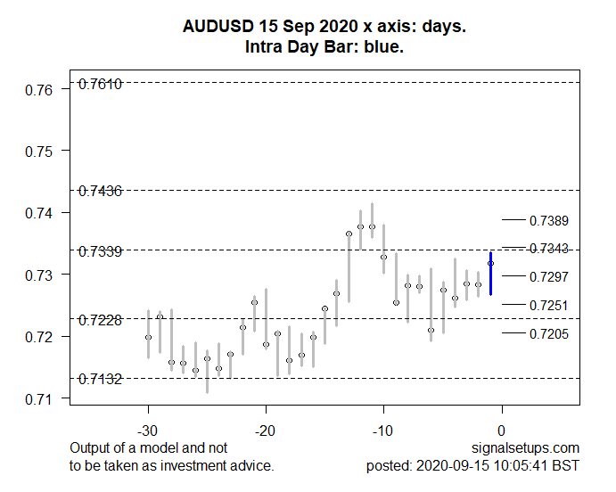 The model suggests a continuation of the price upwards to resistance around 0.7343-0.7389