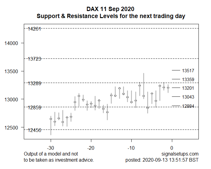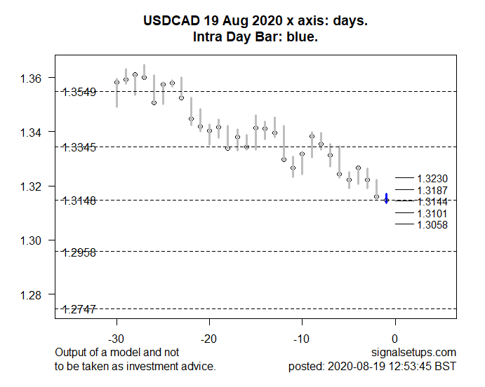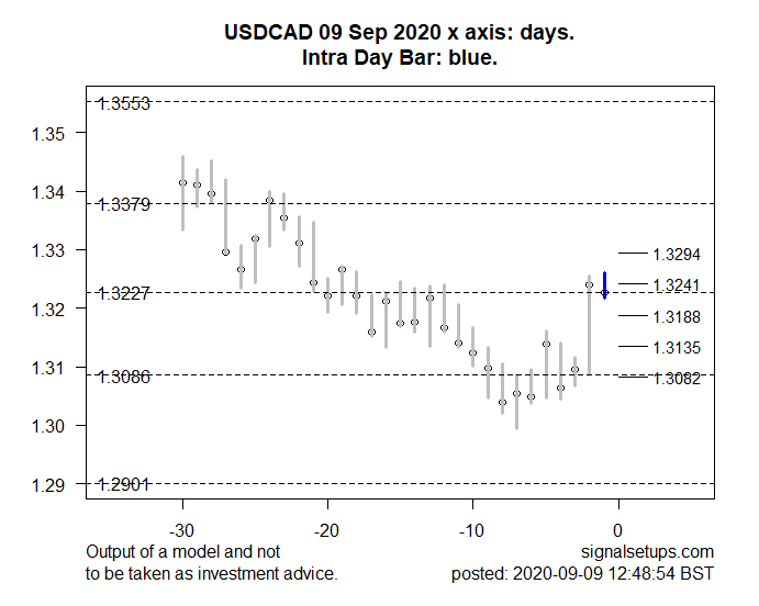 The model suggests that on meeting intraday resistance around 1.3241-1.3294 the price may then fall to support levels around 1.3135-1.3082 over the next few days .