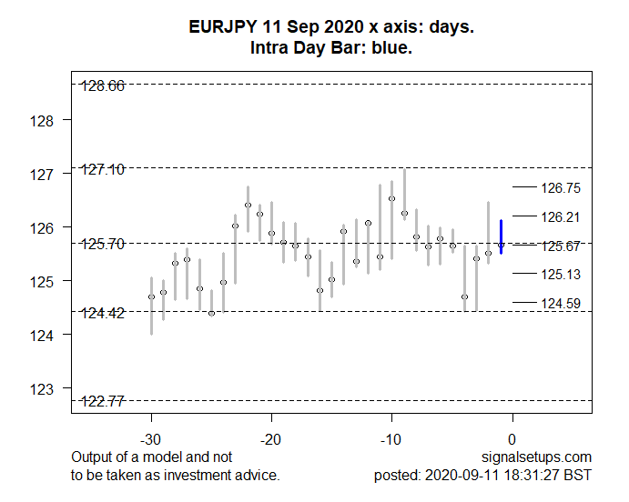 The model suggests a continuation of the price downwards to support around 125.13-124.59