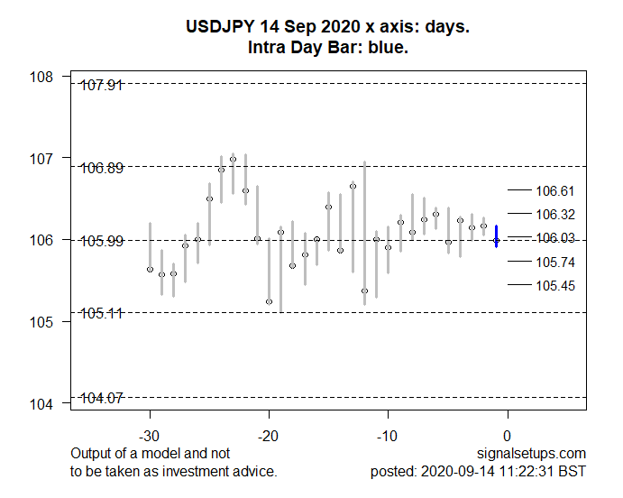 The model suggests a continuation of the price downwards to support around 105.74-105.45