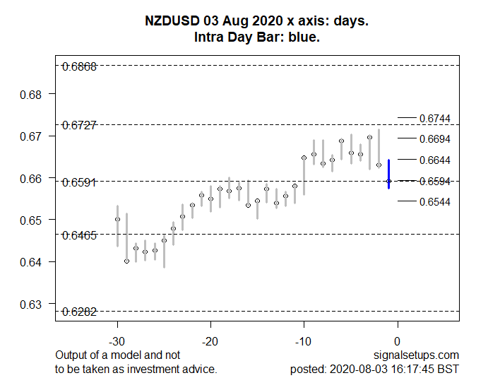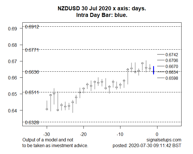 The intraday price is expected in the region 0.6670-0.6598. An alternative bullish scenario would be if price made a sustained move above 0.6670.