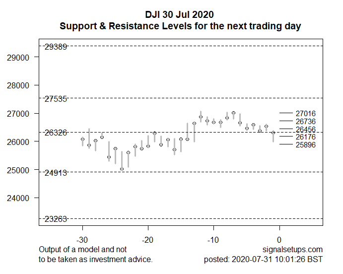 The intraday price is expected in the region 26456-25896. An alternative bullish scenario would be if price made a sustained move above 26456